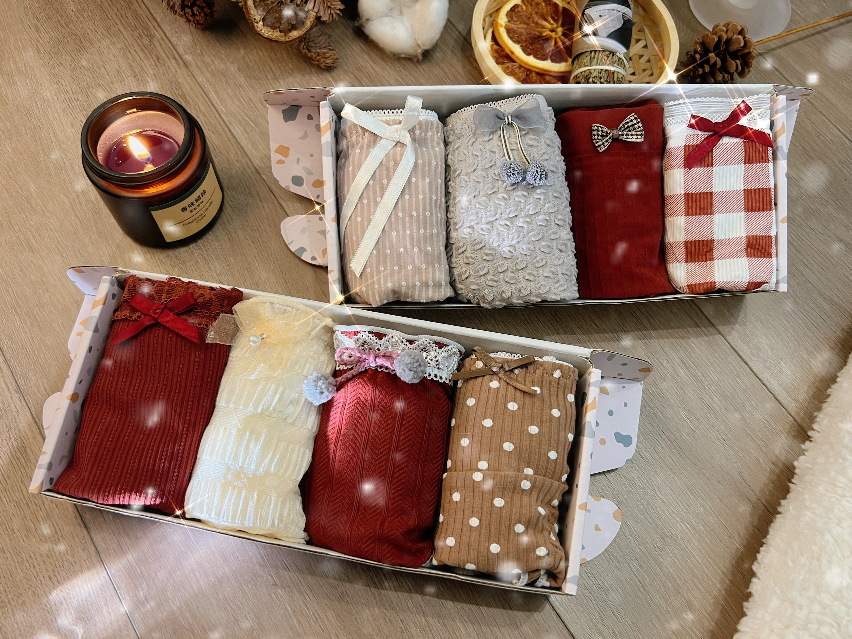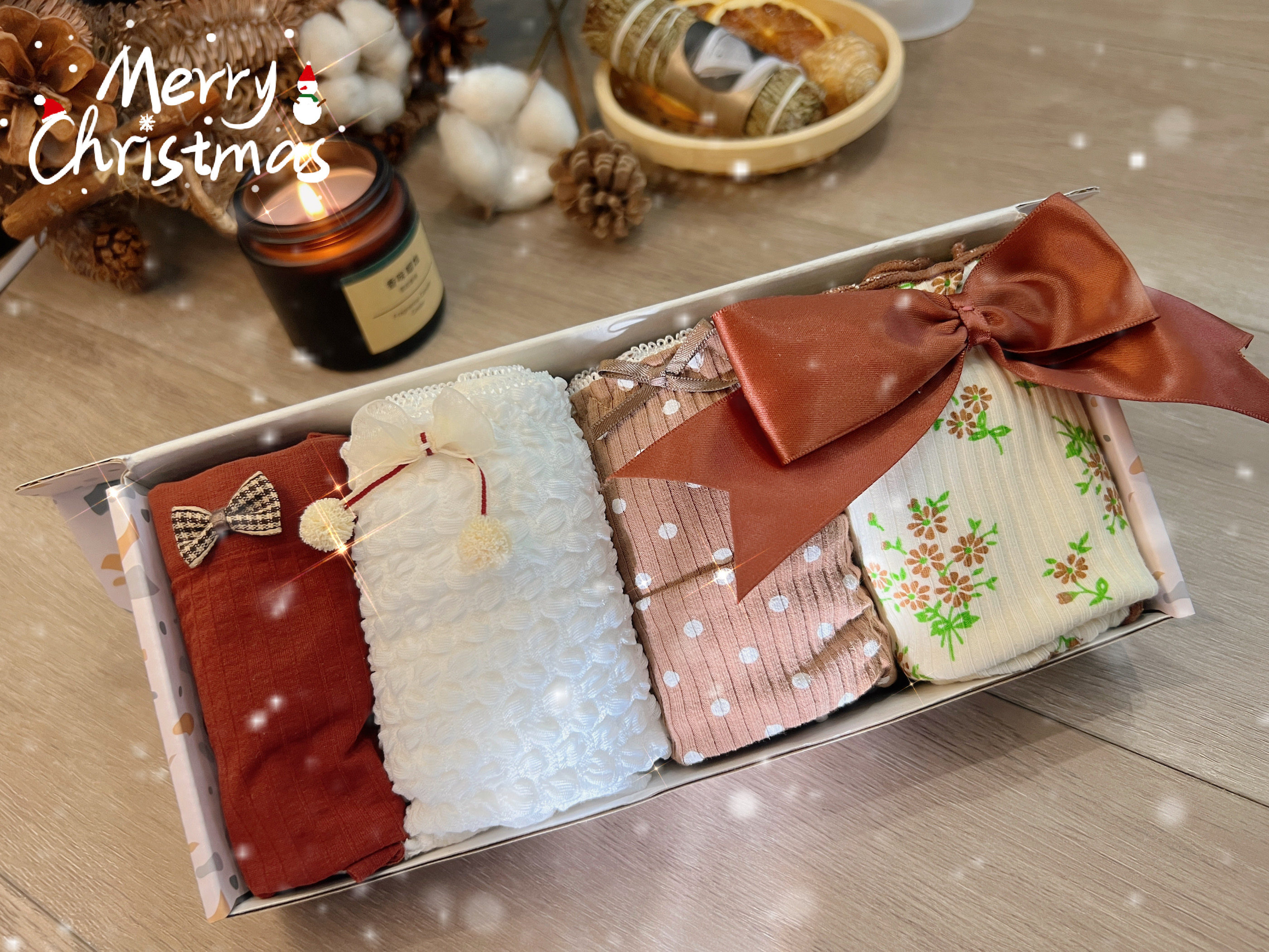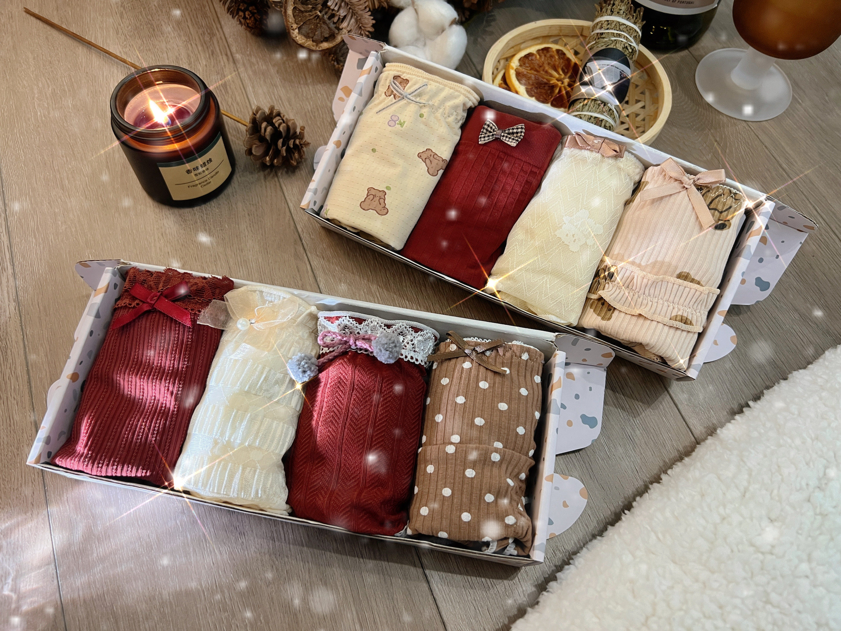 温暖圣诞系列~氛围感圣诞节小礼盒套装女士内裤4条混合款