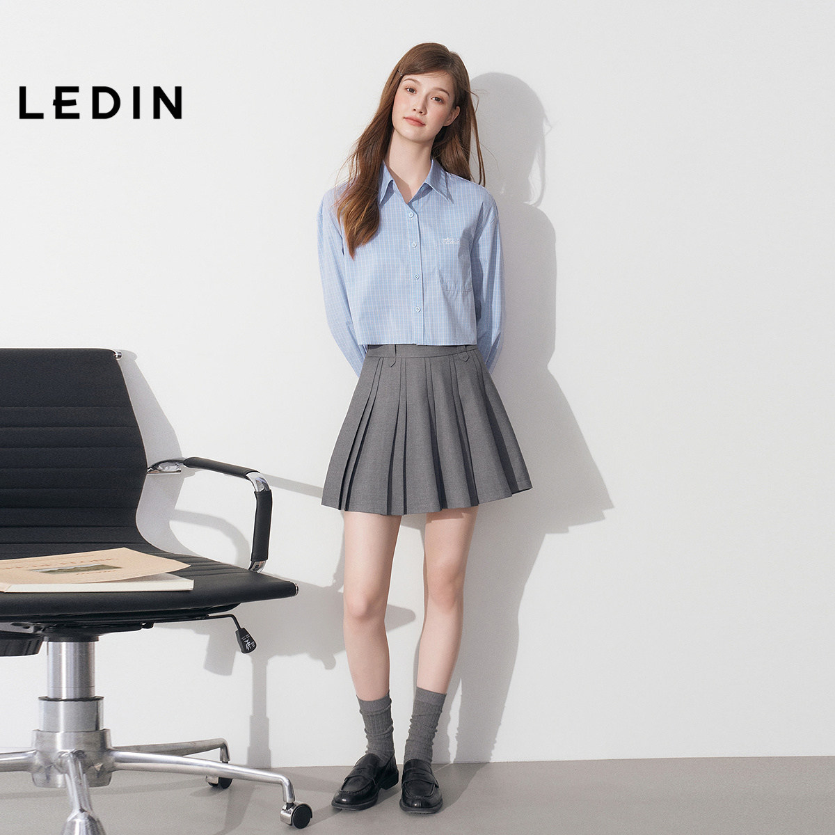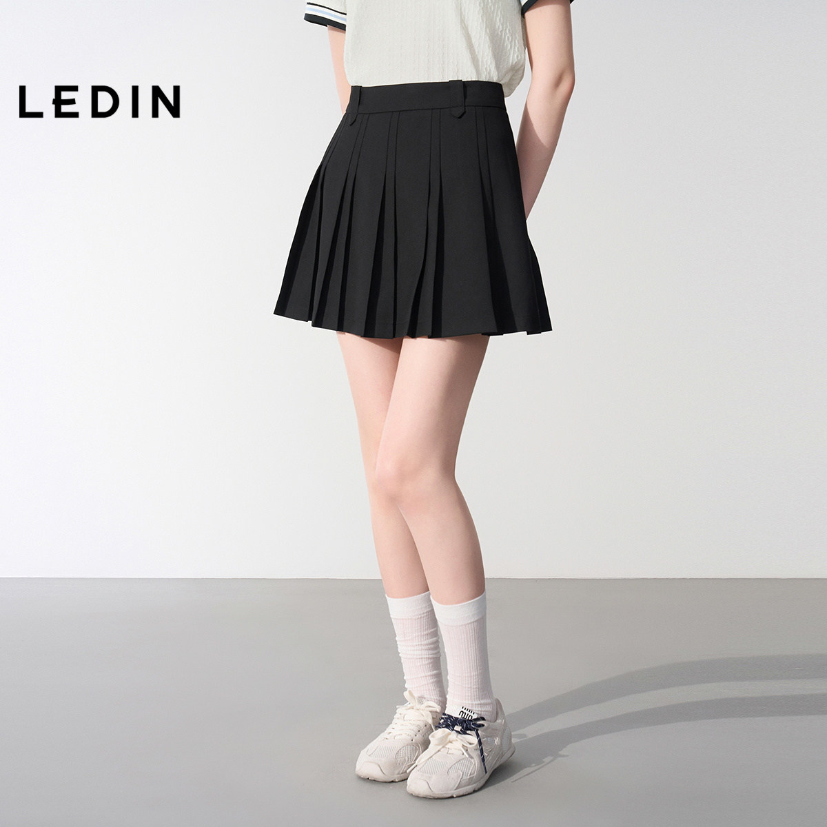 乐町学院风高知半身裙女装春秋设计感腰袢宽窄百褶裙好穿*
