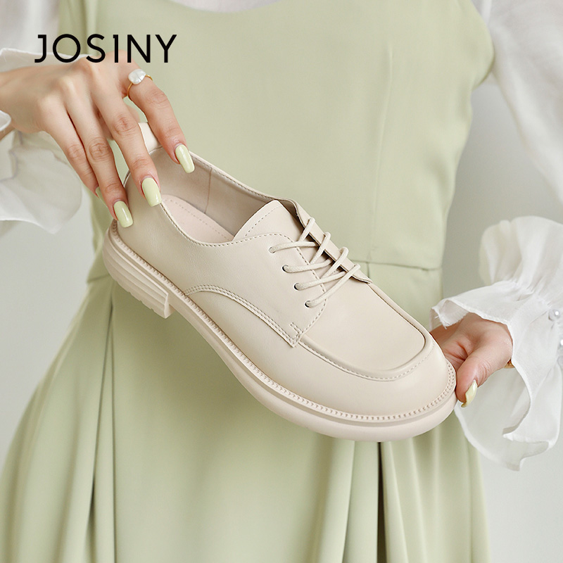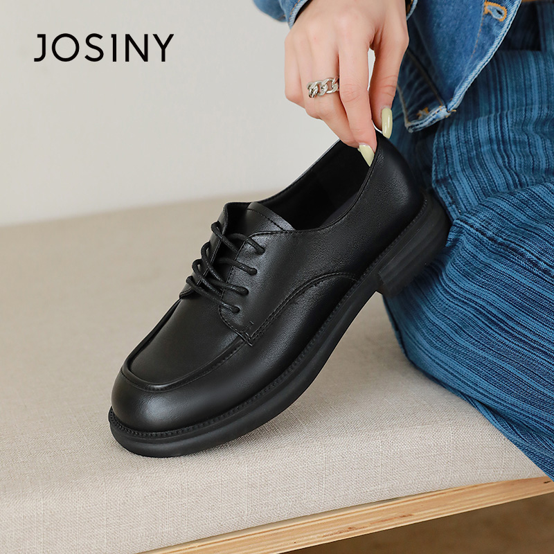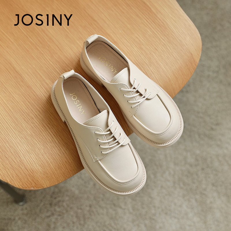 卓诗尼女鞋复古英伦风小皮鞋女春秋季新款圆头系带乐福鞋女士单鞋