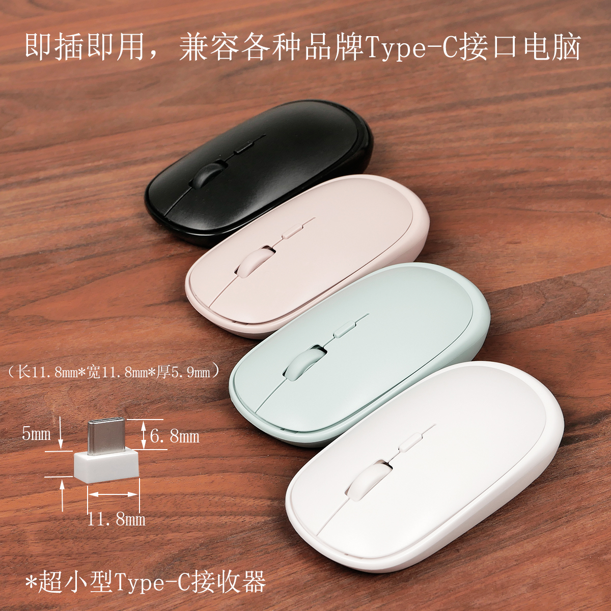 ZK802便携TypeC无线静音鼠标适用于笔记本台式电脑USB-C接口滑鼠
