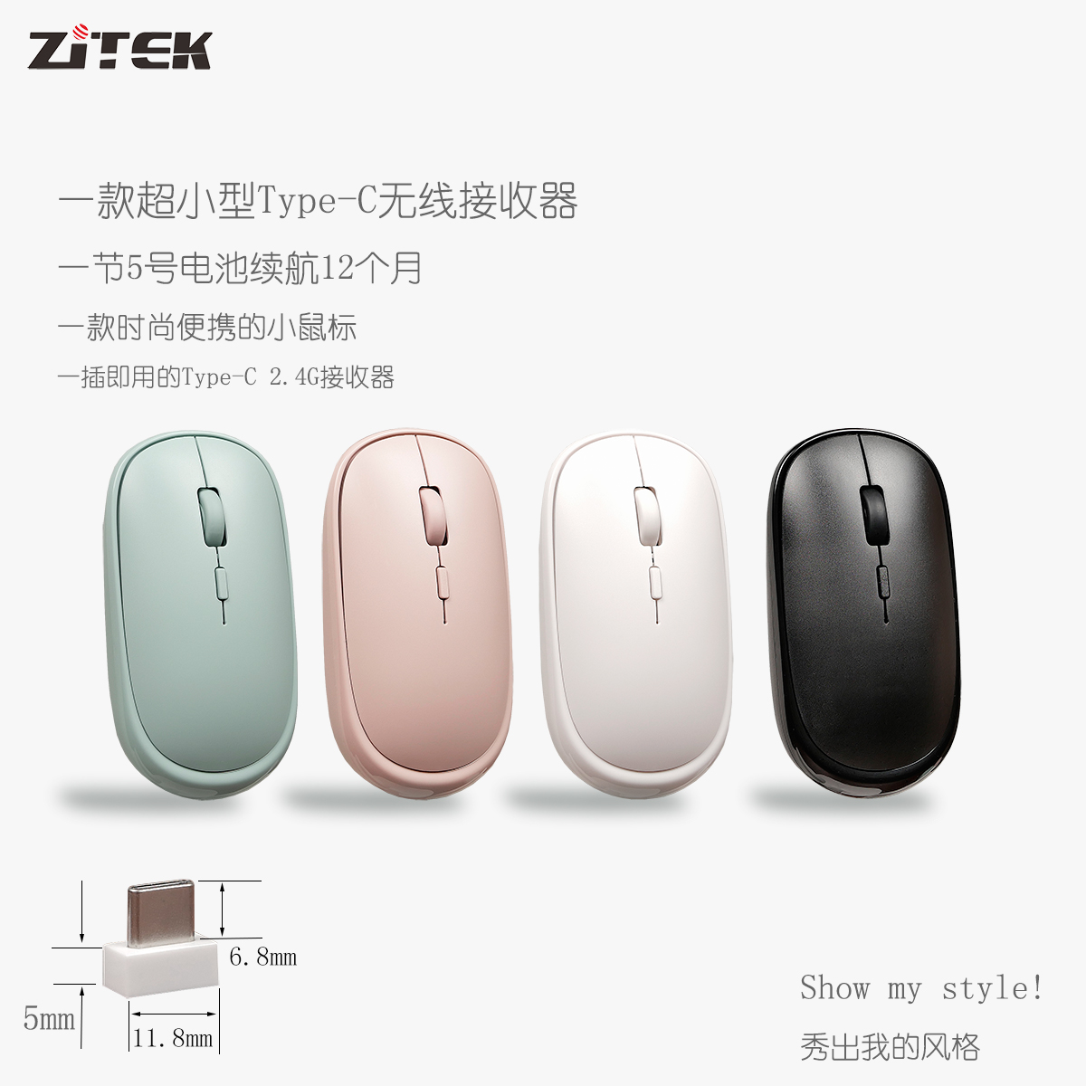 ZITEK/TypeC接收器无线静音鼠标
