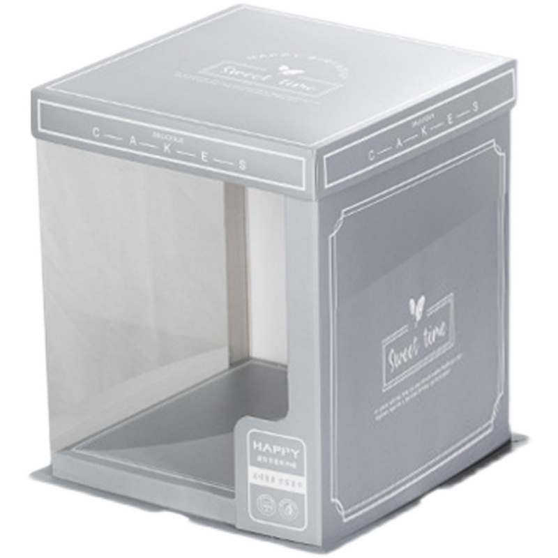 银灰双层加高蛋糕盒6寸8寸10寸半透明三层方生日蛋糕盒子烘焙包装