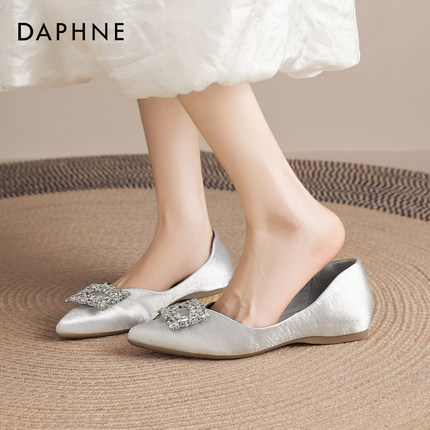 达芙妮法式缎面浅口单鞋女2026新款春季平底鞋子尖头女鞋芭蕾通勤
