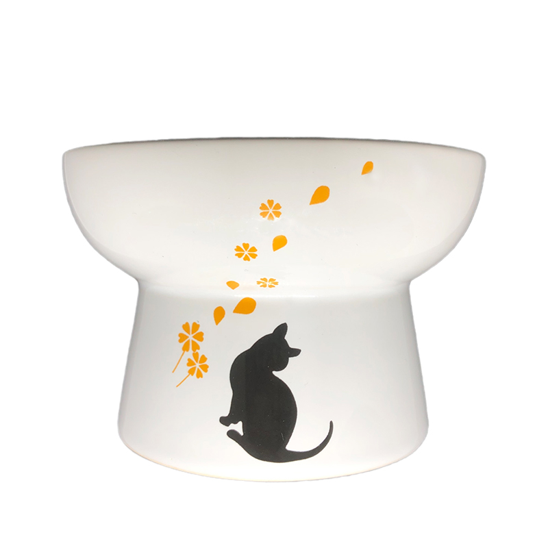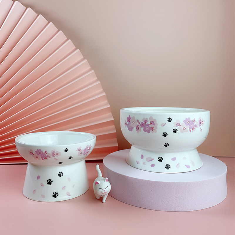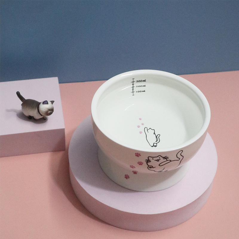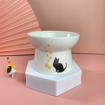 喵小姐日式高脚猫碗陶瓷保护颈椎防打翻饮水宠物碗猫咪水碗双碗