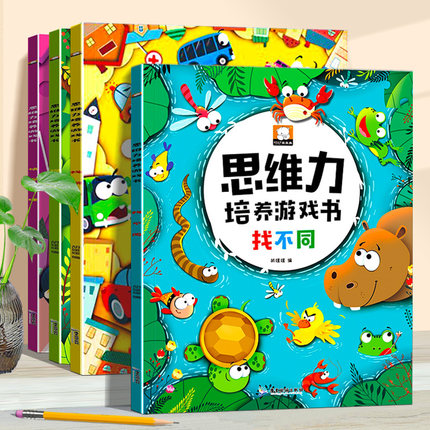 思维力培养游戏书 全套4册 幼儿找不同找规律侦探推理图画捉迷藏专注力训练图书儿童逻辑早教益智书籍3-6岁幼儿园
