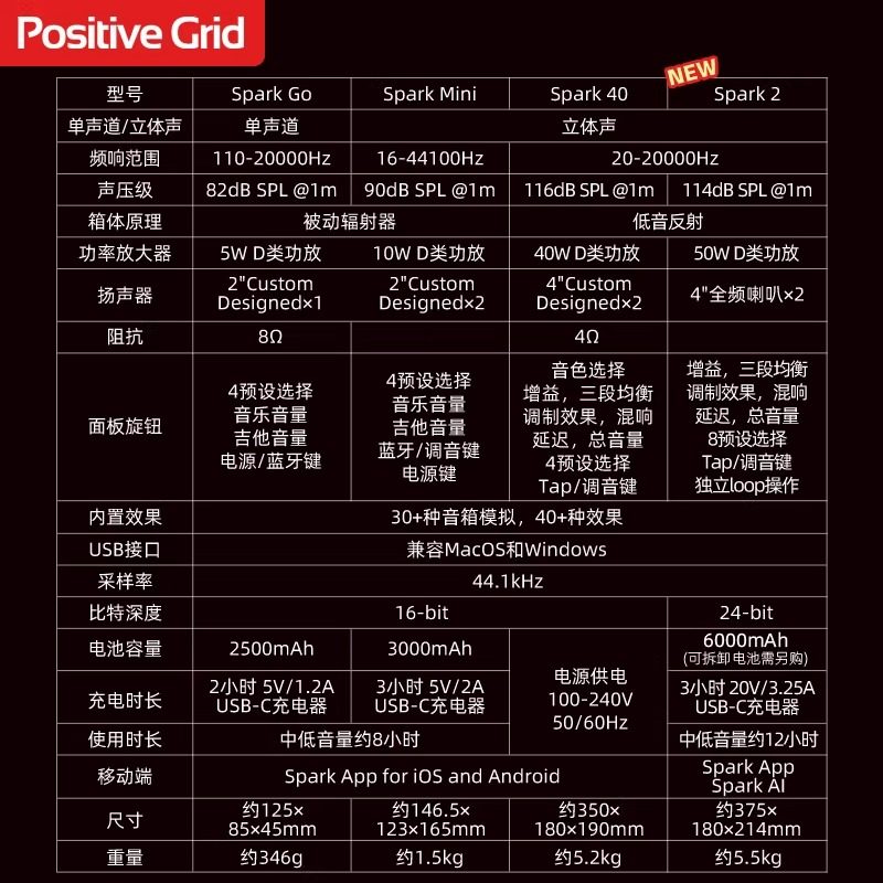 PositiveGrid电吉他音箱Spark Mini 40 Go贝斯小型充电蓝牙音响