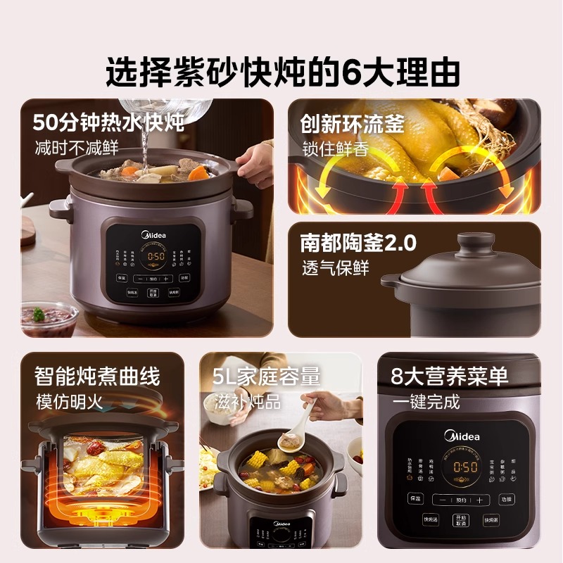 美的电炖锅全自动煲汤锅陶瓷电砂锅家用电砂锅大容量炖盅煮粥神器