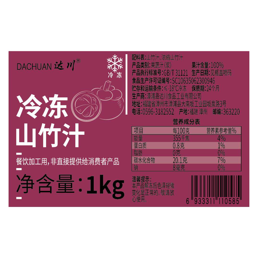 达川冷冻鲜榨山竹汁非浓缩山竹果汁原浆咖啡奶茶家用商用原料