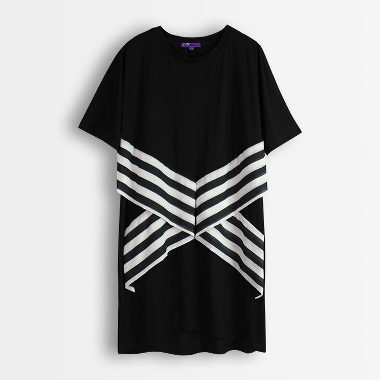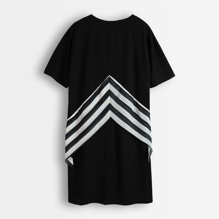 亲爱的翻译官吴嘉怡同款 韩版条纹雪纺拼接中长款宽松T恤连衣裙夏