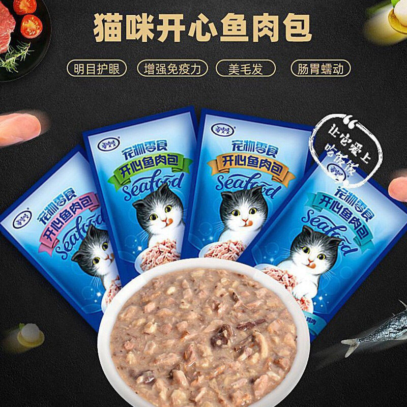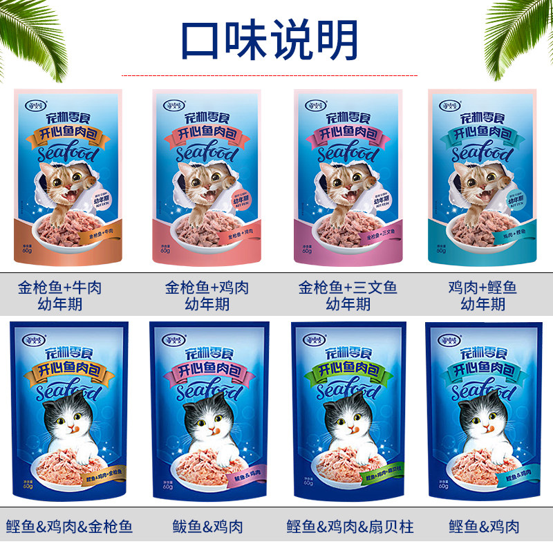 宠物猫湿粮开心鱼肉包猫零食湿粮包软包猫罐头幼猫成猫金枪鱼鸡肉