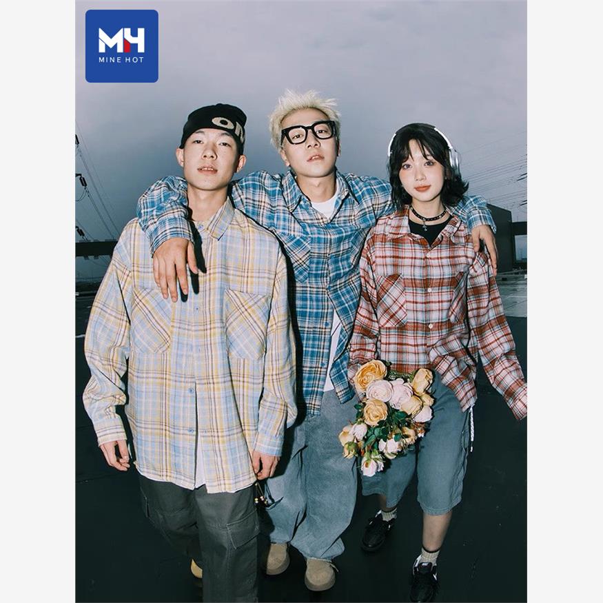唐狮格子衬衫女2025新款爆款春秋情侣宽松长袖薄外套开衫上衣男X