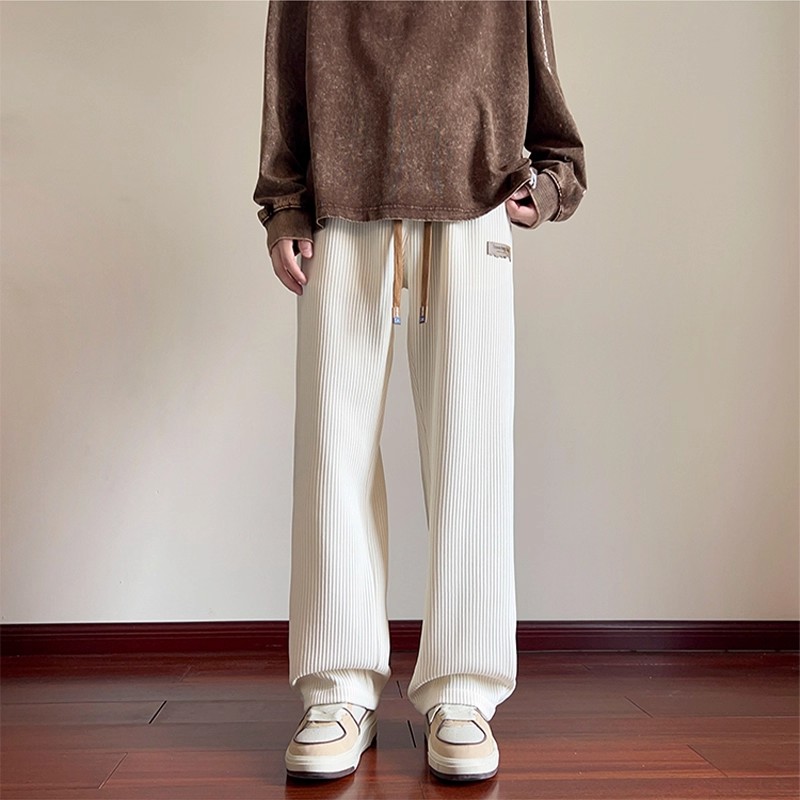 米白色灯芯绒潮流运动裤休闲春秋季卫裤直筒阔腿裤男款宽松