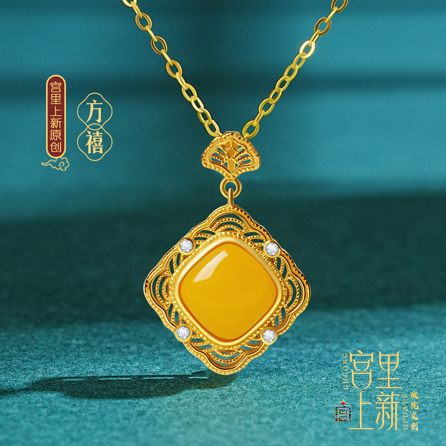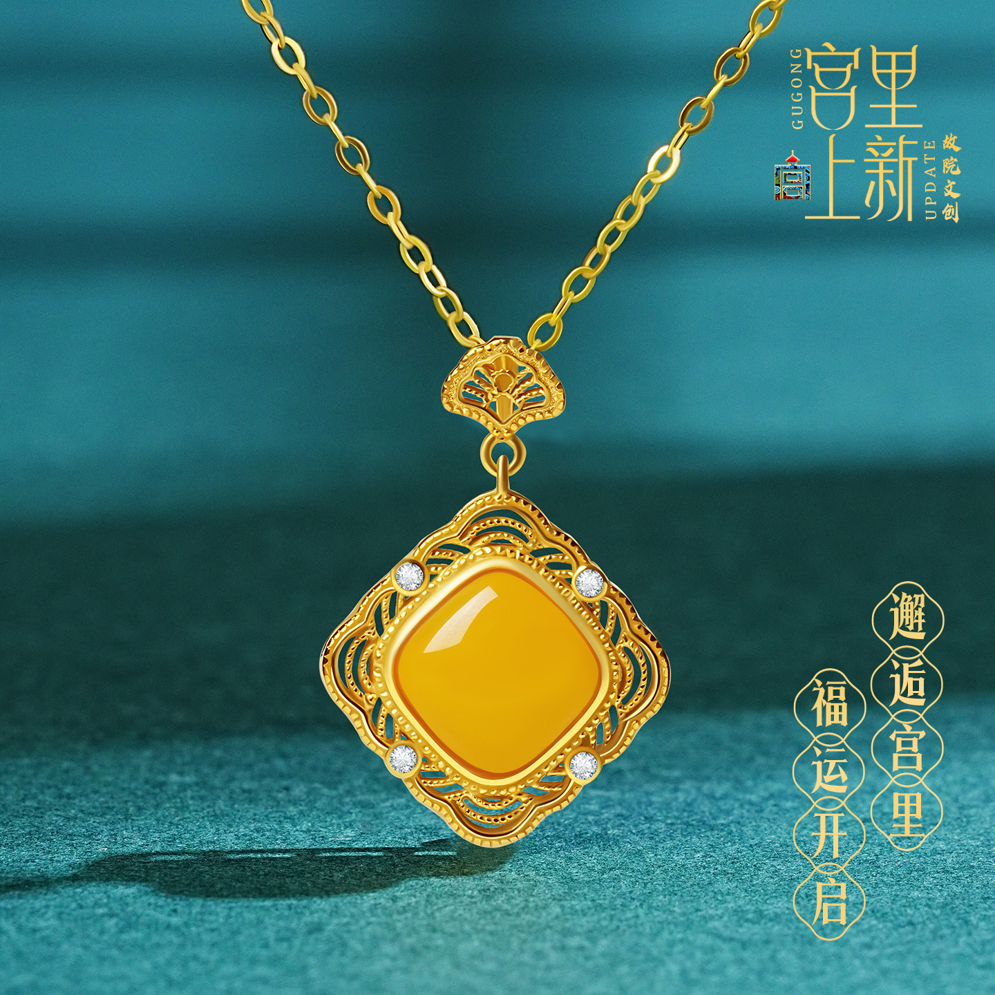 宫里上新蜜蜡吊坠女款正品琥珀项链配饰新中式国风送妈妈生日礼物