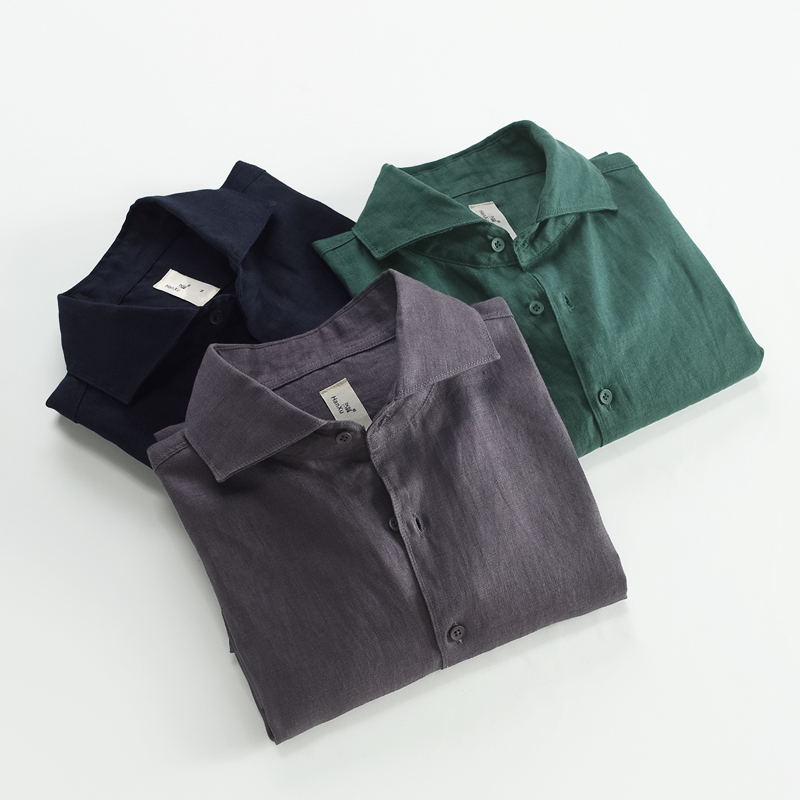 透气亚麻温莎领绅士轻熟长袖衬衫