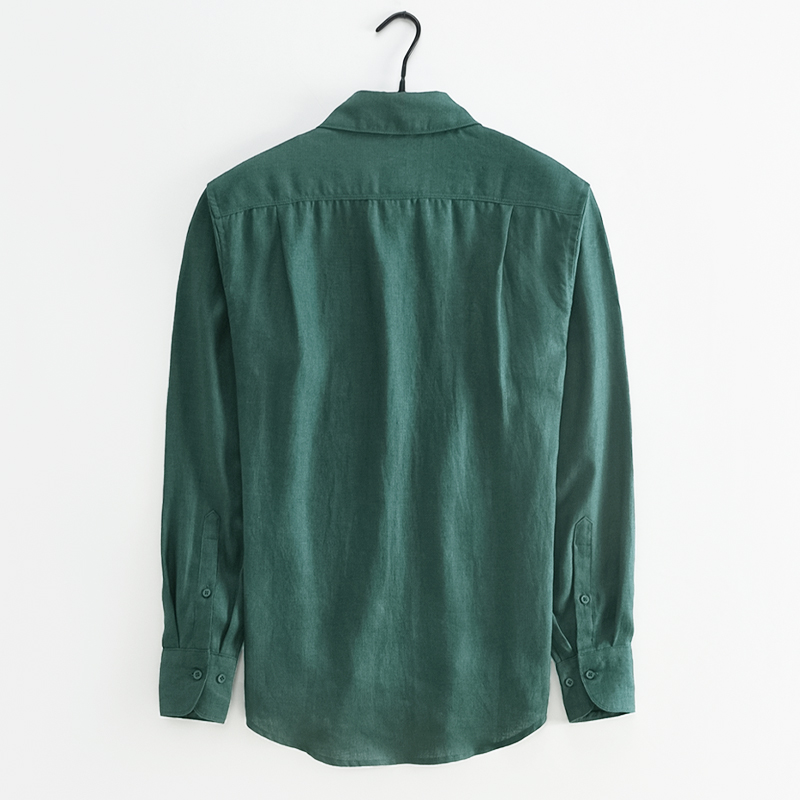 汉絮时尚英伦风温莎领男装亚麻长袖衬衫春季轻熟绅士宽松休闲衬衣