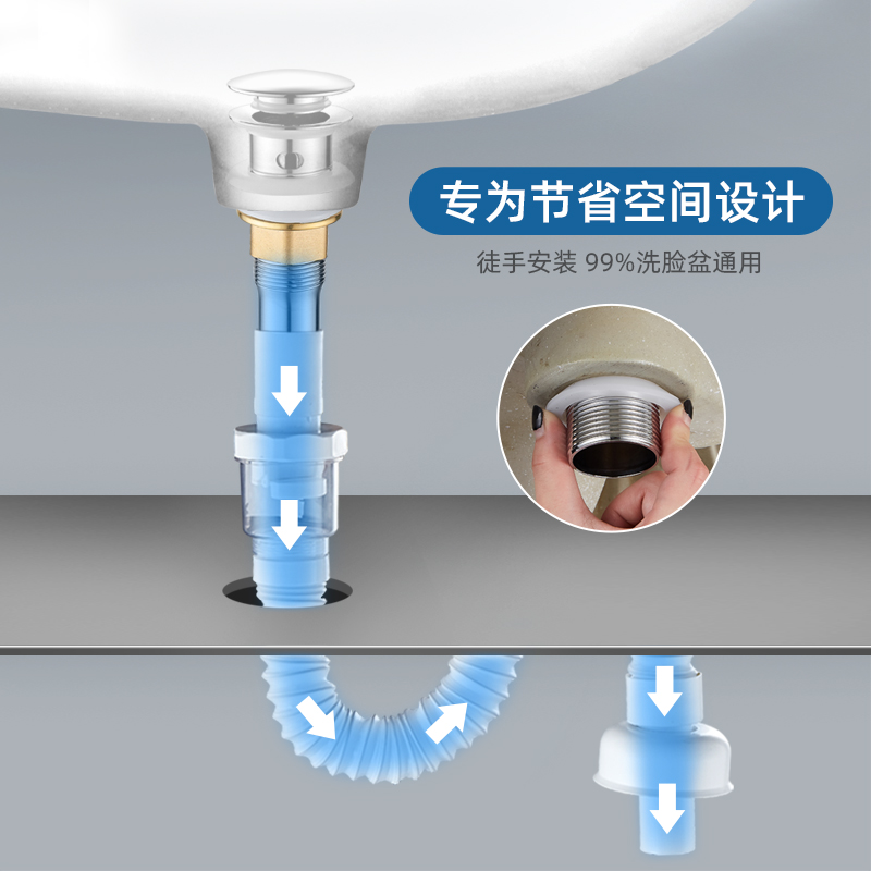 洗脸盆防臭下水器洗手池台盆面盆浴室软管排水配件过滤漏水塞管子