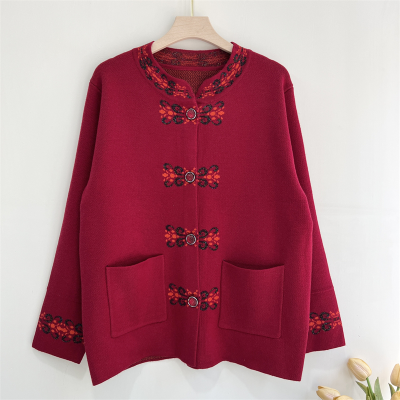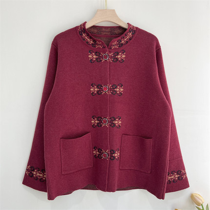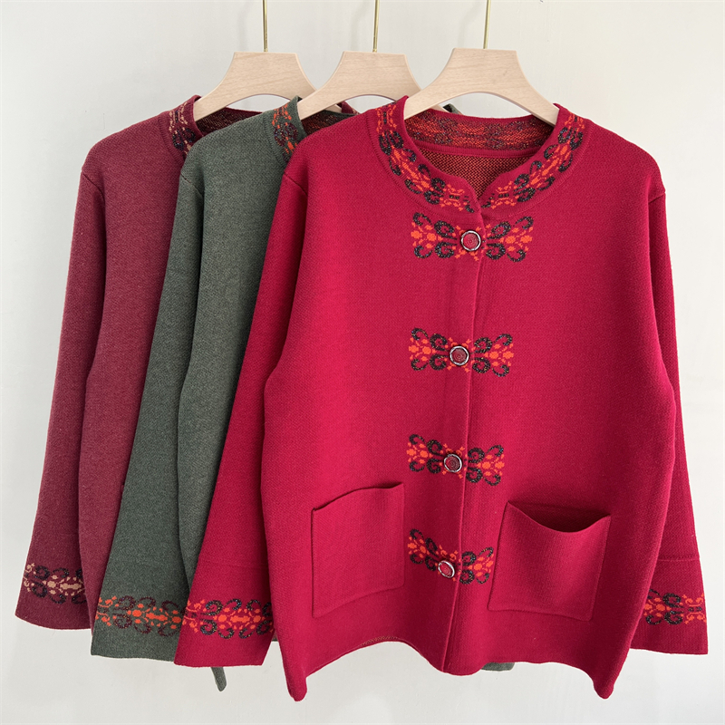 加绒加厚针织开衫中老年女秋冬奶奶装洋气外套妈妈保暖老太太上衣