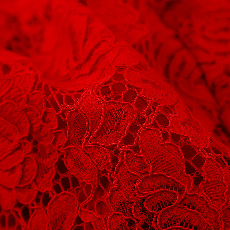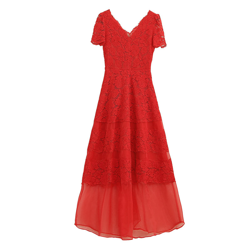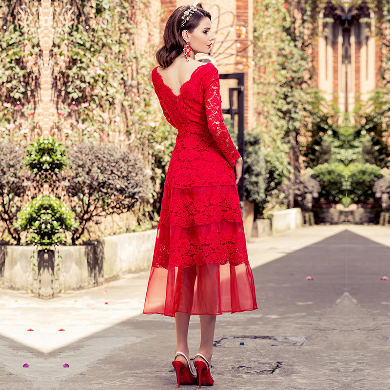 中长款女装蕾丝法式大红色连衣裙