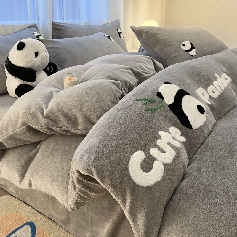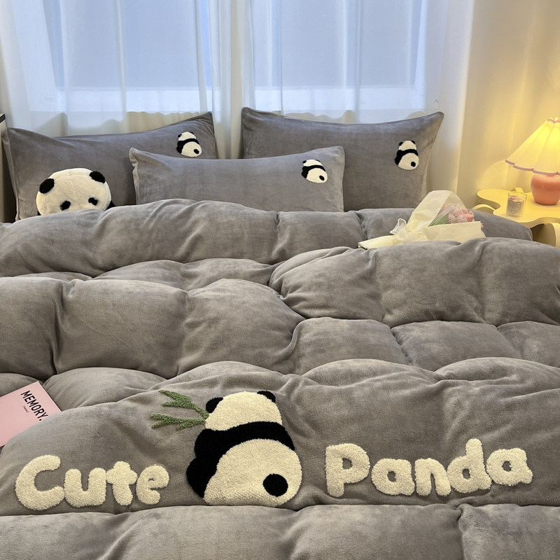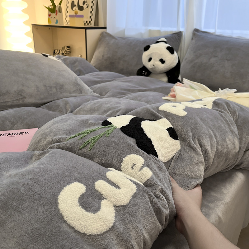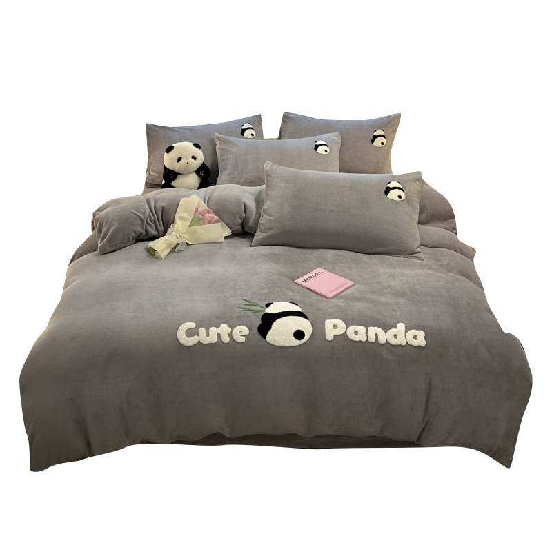 双面加厚牛奶绒床上四件套冬季毛巾绣珊瑚绒被套罩保暖床单三件套
