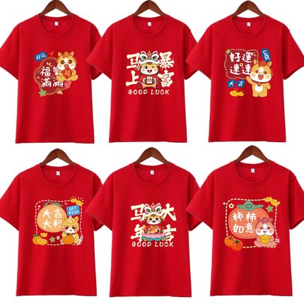 2026马年本命年衣服红色新年t恤男女纯棉短袖情侣喜庆大码定制DIY