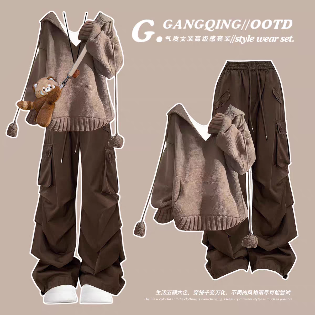 高中学生加绒卫衣两件套装13少女网红时尚15岁初中生冬季14格子裤