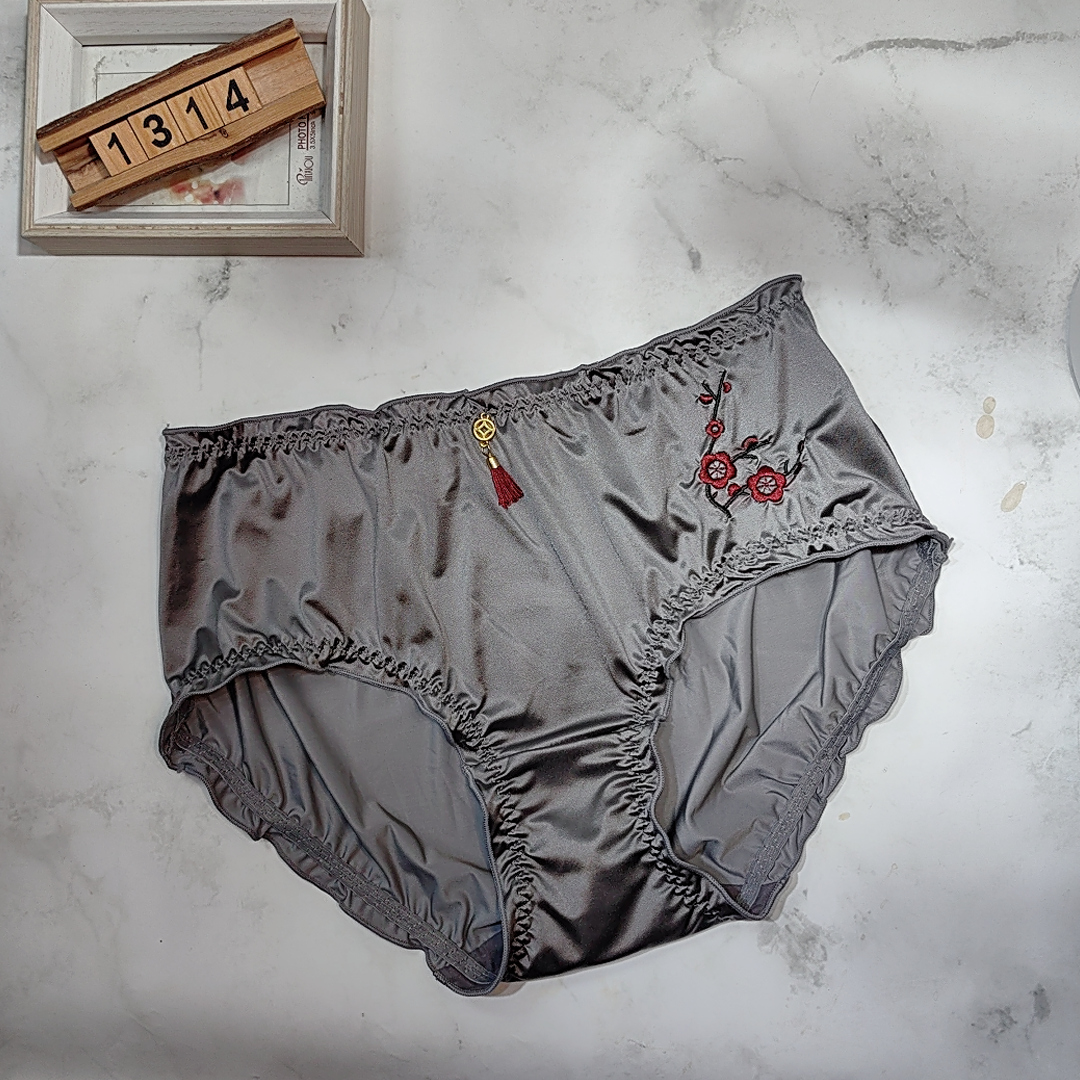 闹小姐秋冬新款新款丝绸缎面丝滑刺绣木耳边甜美中腰高弹包臀底裤