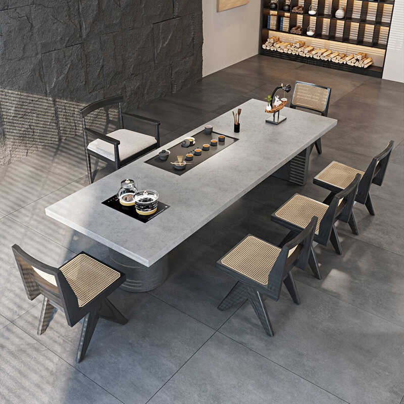 侘寂风大板实木茶桌椅组合办公室原木功夫泡茶烧水壶一体茶台茶桌