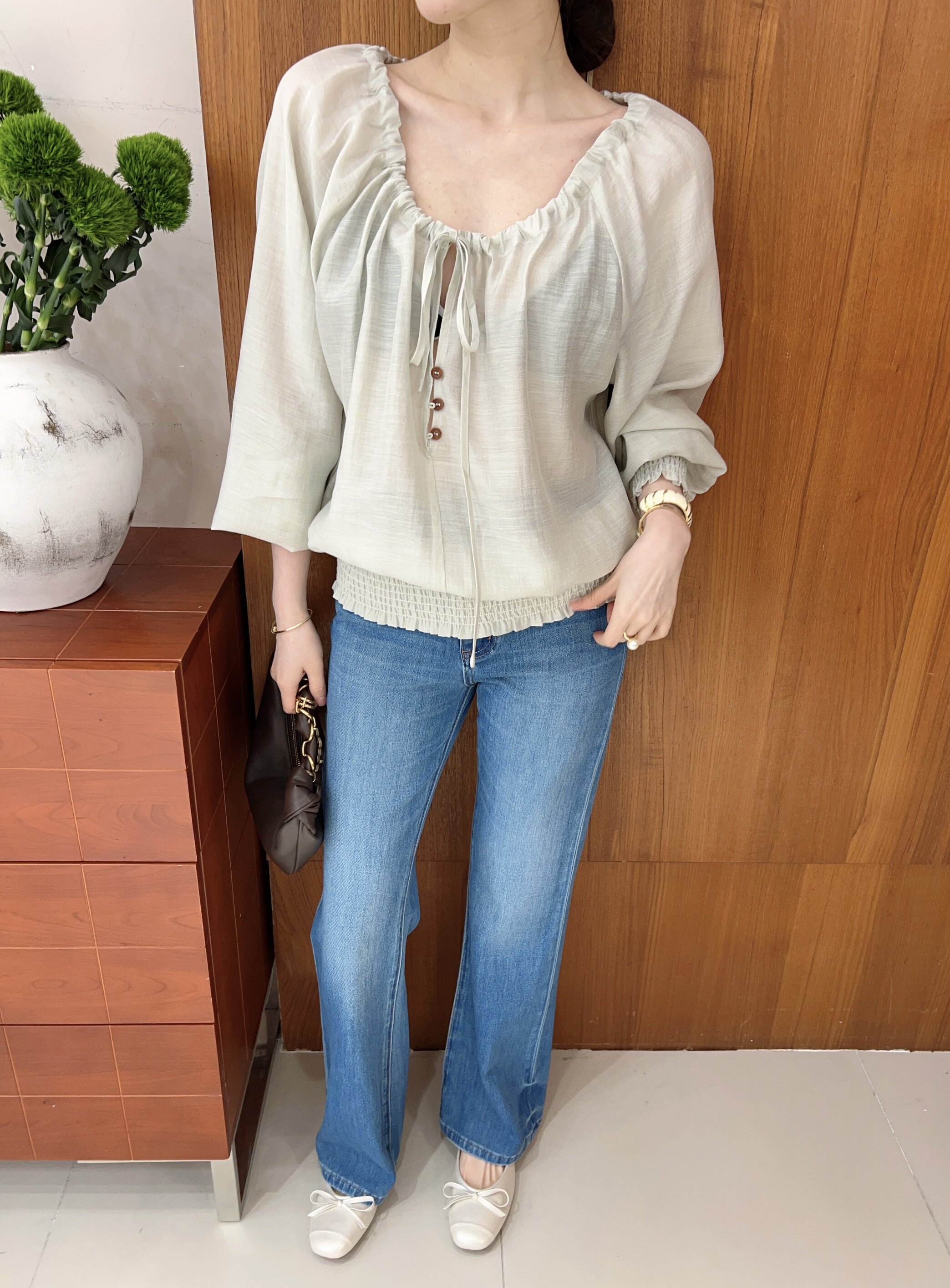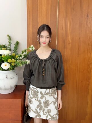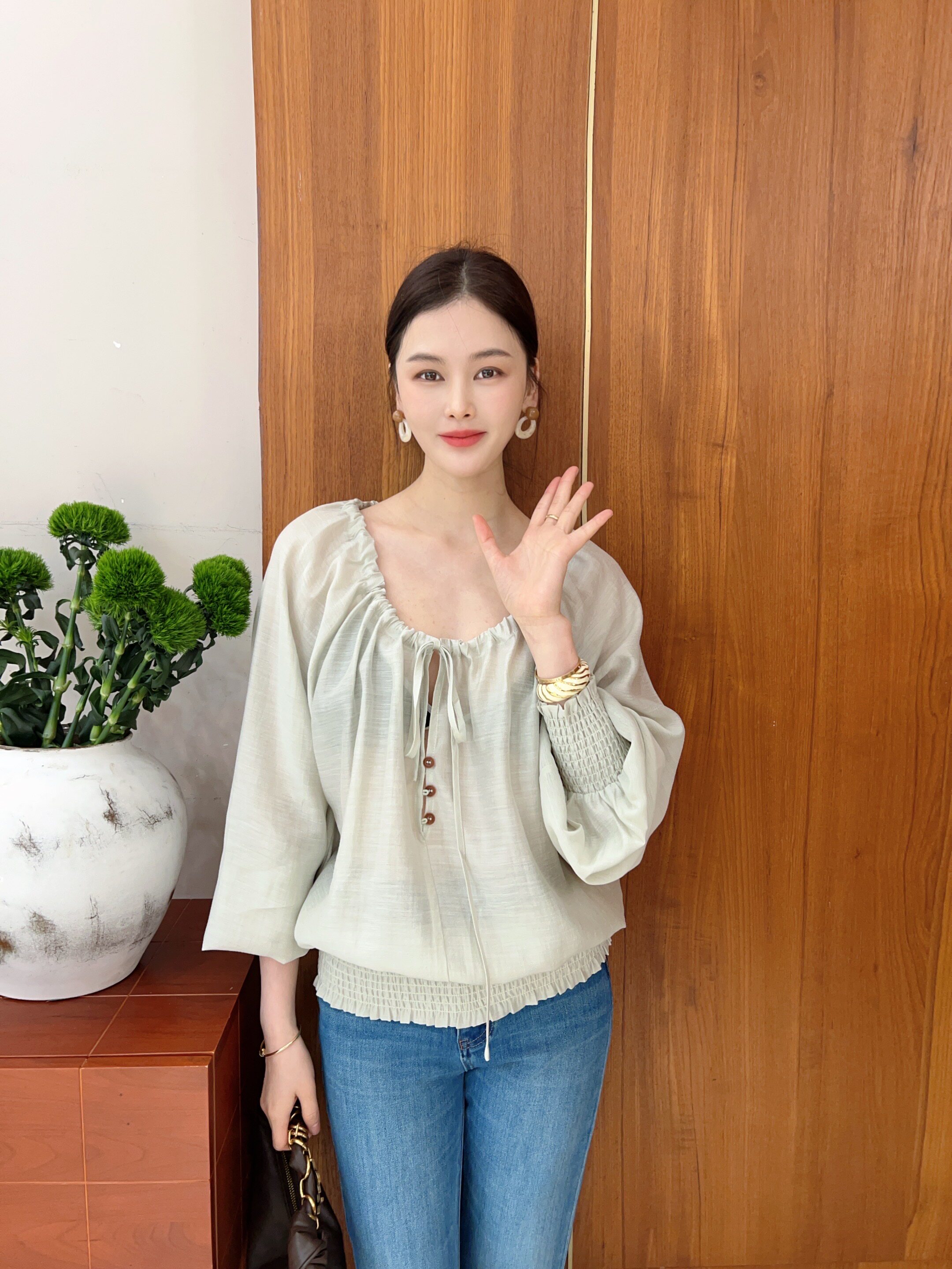 2026春季新款韩版时尚百搭圆领系带宽松纯色衬衫女长袖套头上衣潮