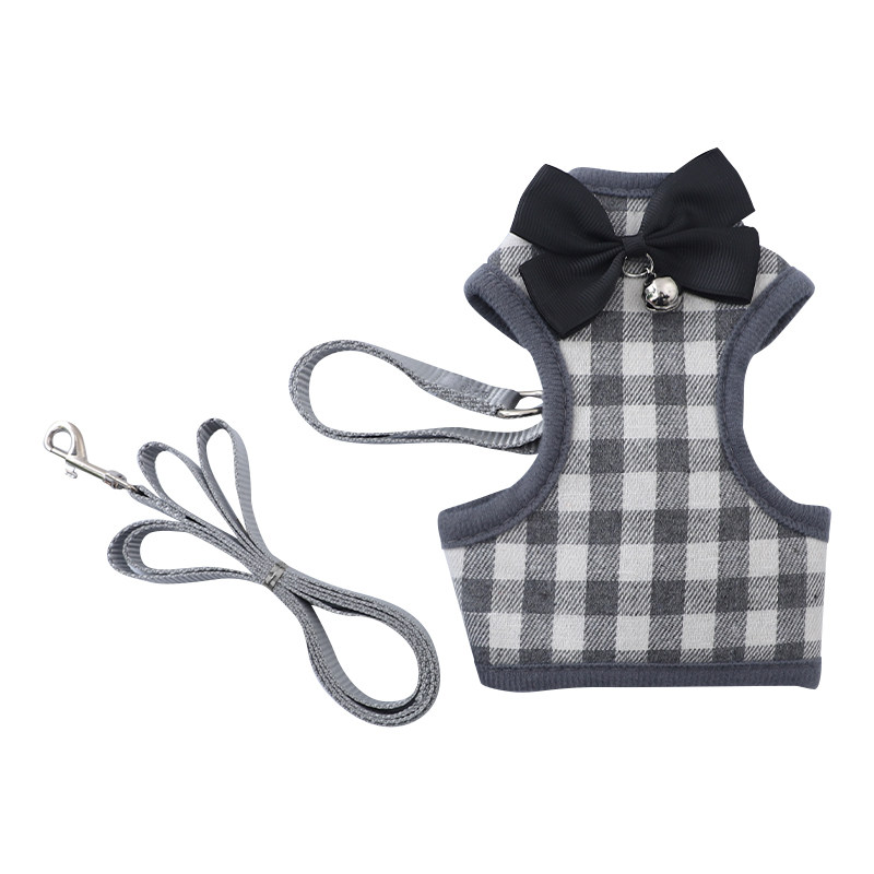 猫咪牵引绳灰白拼接格子背心式胸背带奶牛猫外出专用防挣脱溜猫绳