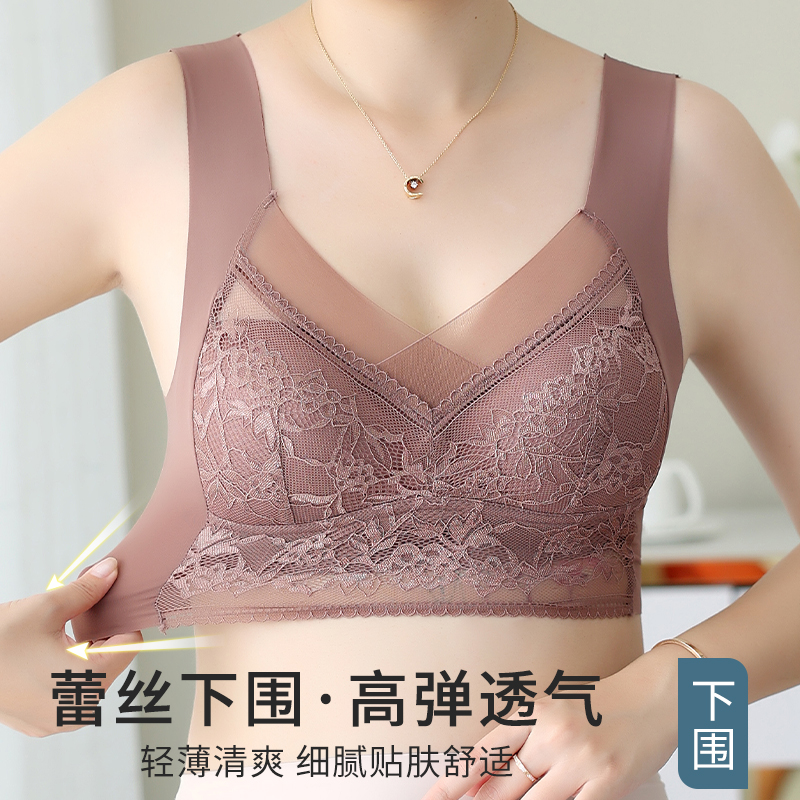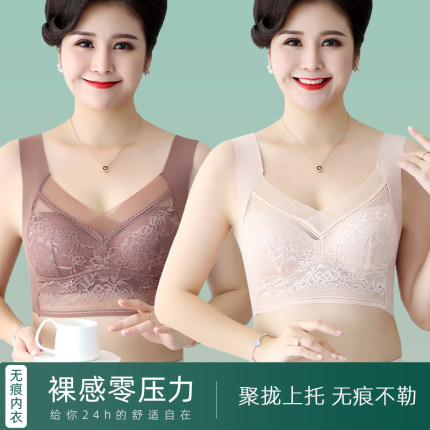 夏季薄款妈妈内衣中老年人妇女士背心式聚拢文胸固定杯防走光抹胸