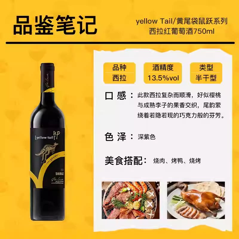 黄尾袋鼠 澳洲进口跃系列葡萄酒750ml红酒UP 双支新年礼盒送礼