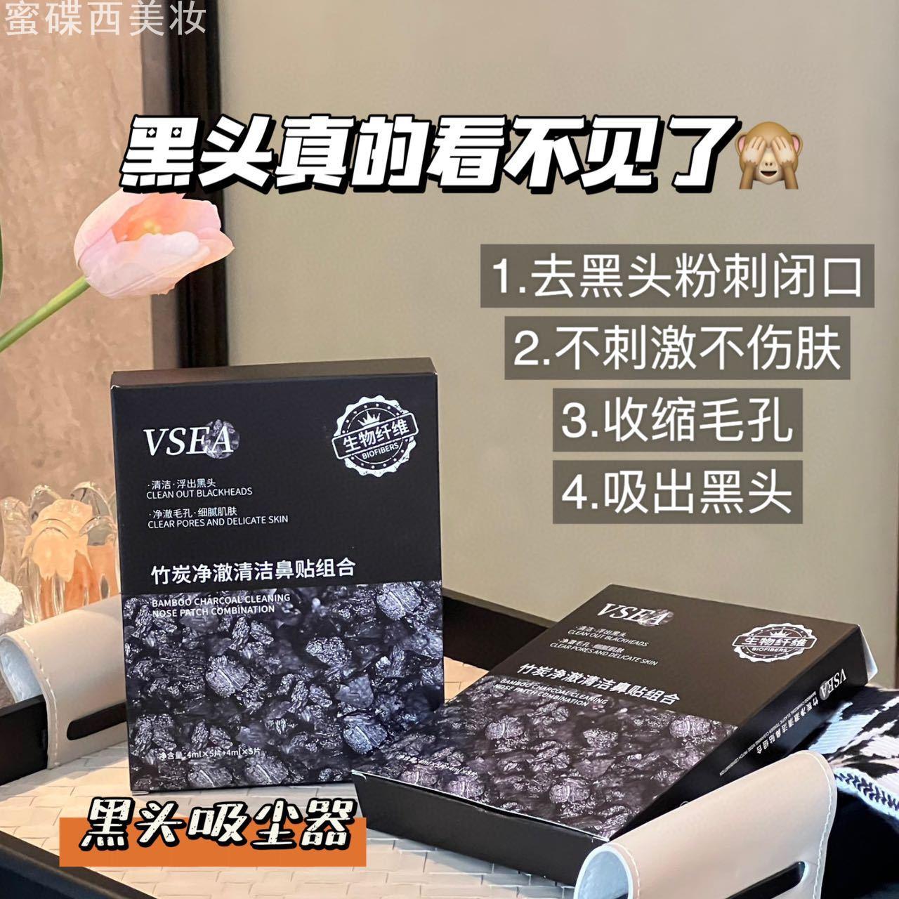 竹炭去黑头鼻贴鼻膜 t区护理膜清洁面膜粉刺收缩毛孔导出液组合装