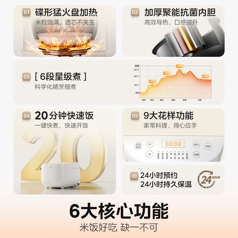 美的电饭煲家用4升大容量不粘多功能智能预约快速煮饭小电饭锅