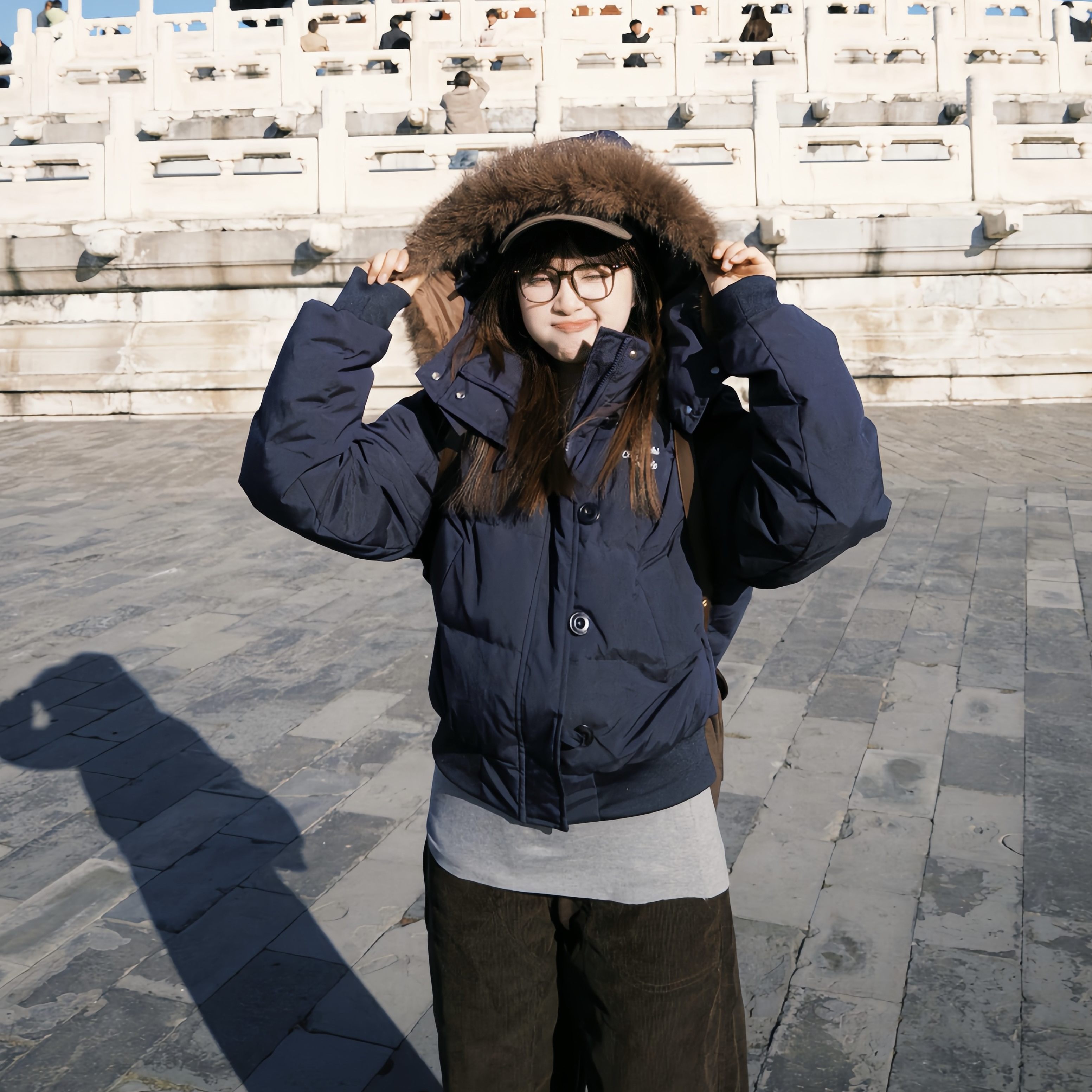 期望Studio冬季美式毛领短款羽绒服女宽松加厚保暖连帽面包服外套