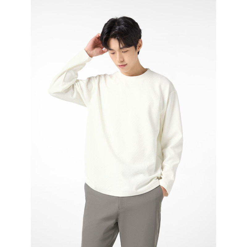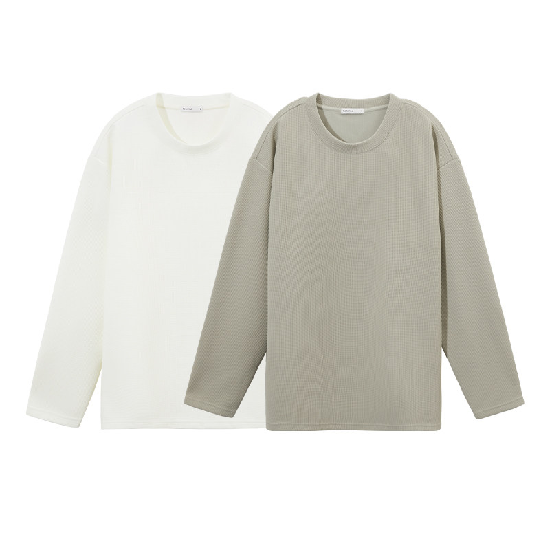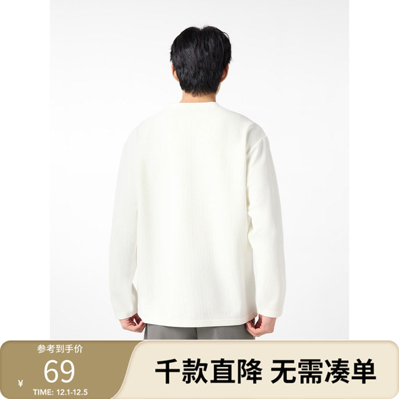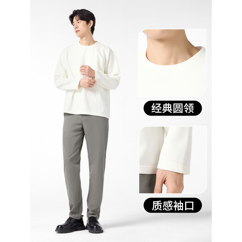 热风2025年秋季新款男士肌理基本长T基础款内搭上衣插肩袖T恤