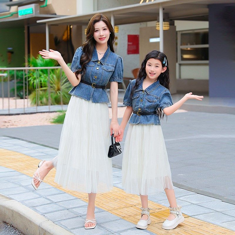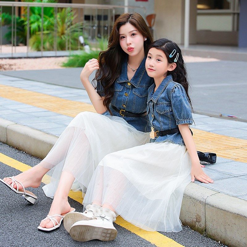 不一样的亲子装夏季母女装薄款牛仔套装洋气高端炸街连衣裙两件套