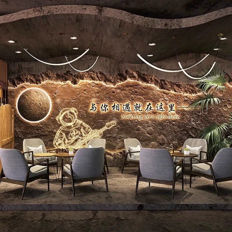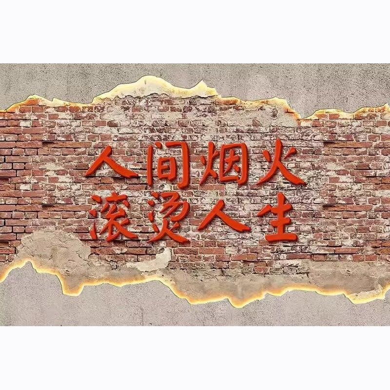 3D水泥破墙工业风壁纸烧烤火锅饭店餐厅L墙纸叙利亚风格装修壁画