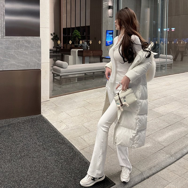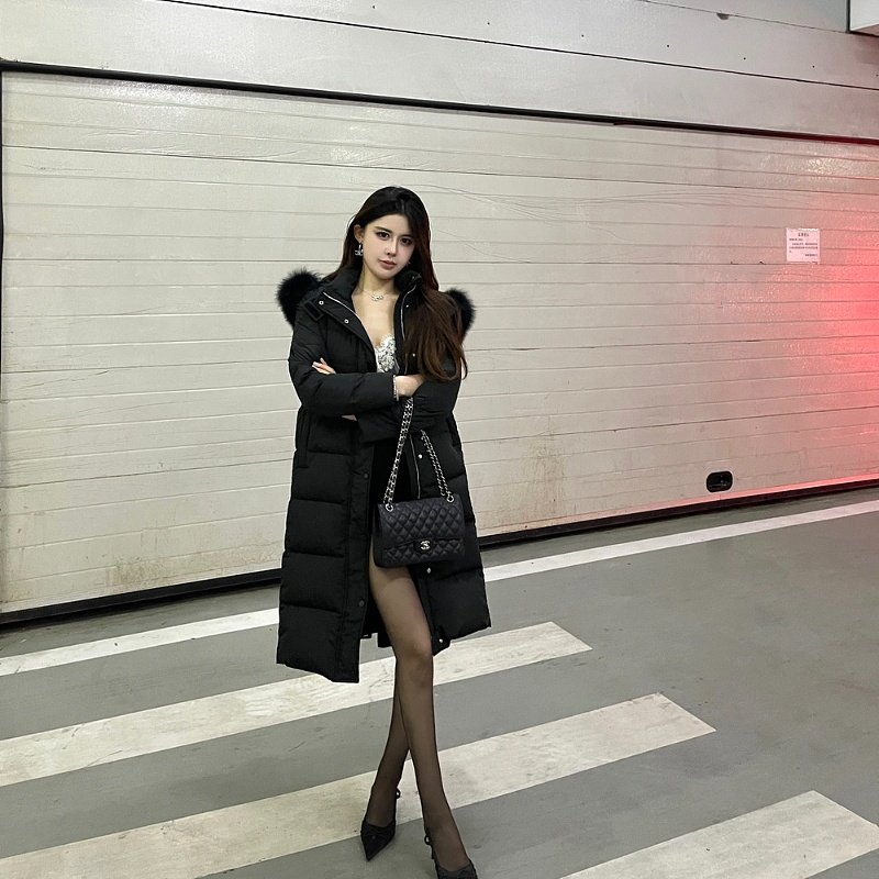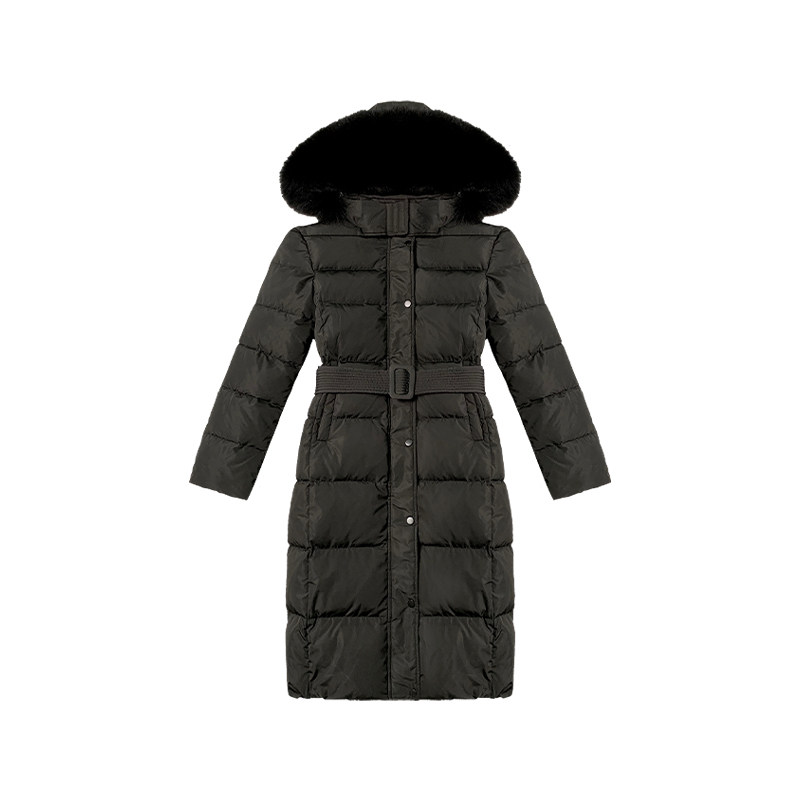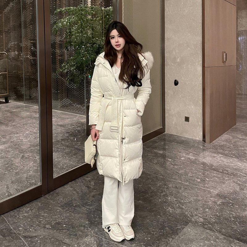 M900中长款羽绒服女2025新款冬黑色高级感超好看连帽大毛领白鸭绒