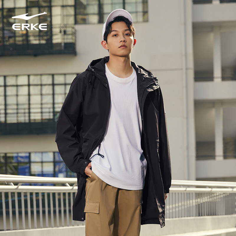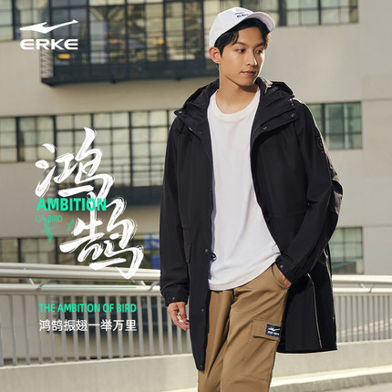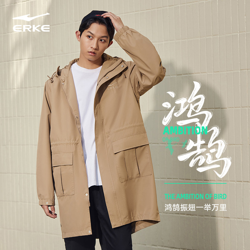 鸿星尔克丨鸿鹄风衣男士秋季国潮复古中长款防风运动外套大衣服装