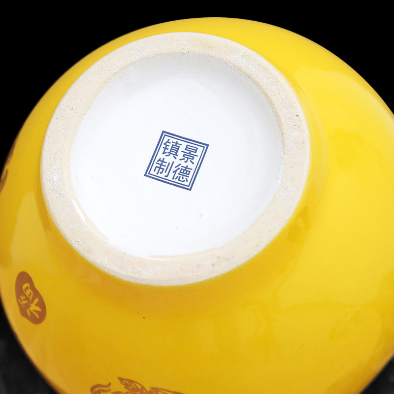 景德镇陶瓷器花瓶中国红色描金花瓶摆设婚礼祝寿开业礼品装饰品