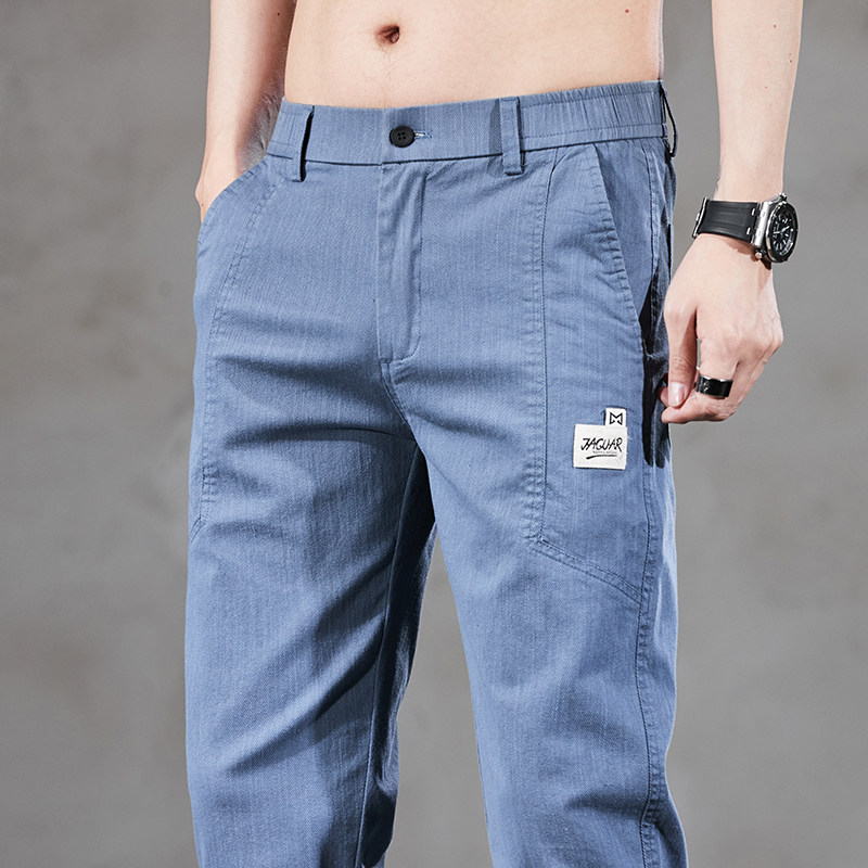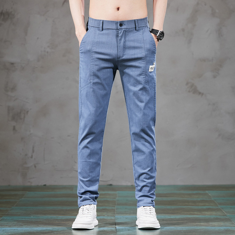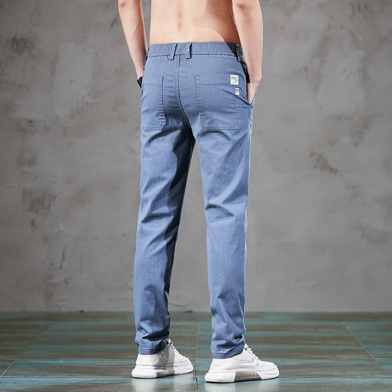 夏季冰丝休闲裤子男潮牌直筒韩版潮流修身男裤超薄款牛仔长裤百搭