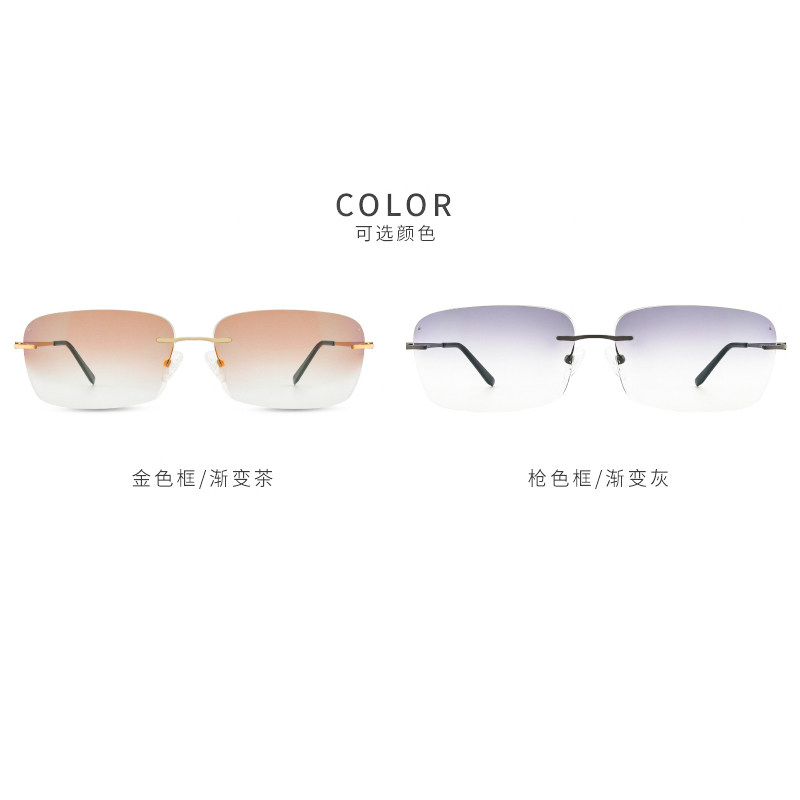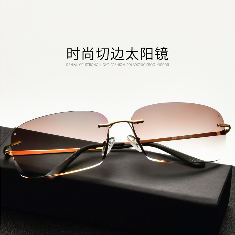 太阳镜无框遮阳墨镜多边形浅色切边镶钻树脂镜片男款司机驾驶2520