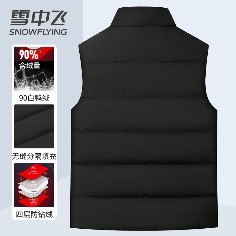 雪中飞中老年男士羽绒马甲外穿内搭秋冬爸爸坎肩90白鸭绒保暖背心