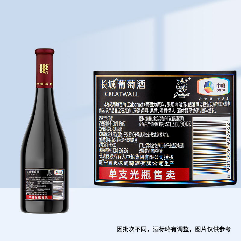 长城干红葡萄酒黑标解百纳红酒整箱750ml×6正品亲民热销款
