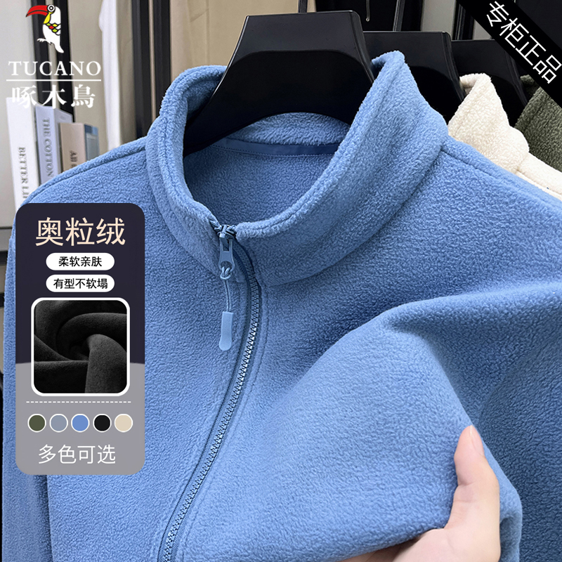 啄木鸟奥粒绒外套男2025秋季新款纯色保暖抓绒衣休闲时尚立领卫衣