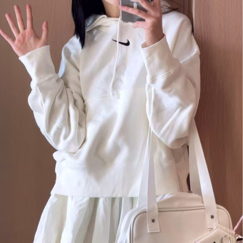NIKE/耐克 Sportswear 纯色口袋连帽套头卫衣 白色女款DQ5859-133