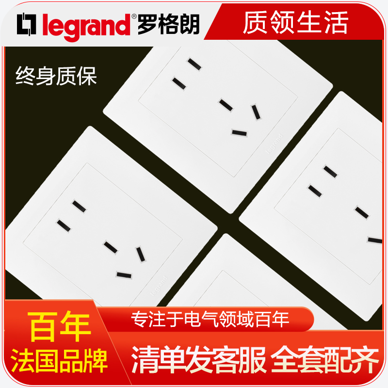 罗格朗博蕴一开5五孔16a家用暗装墙壁单双控86型开关插座面板多孔