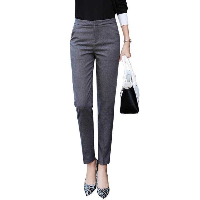 。职业西裤女九分裤休闲工作小脚裤高腰灰色工装长裤直Z筒黑色春