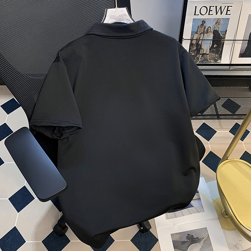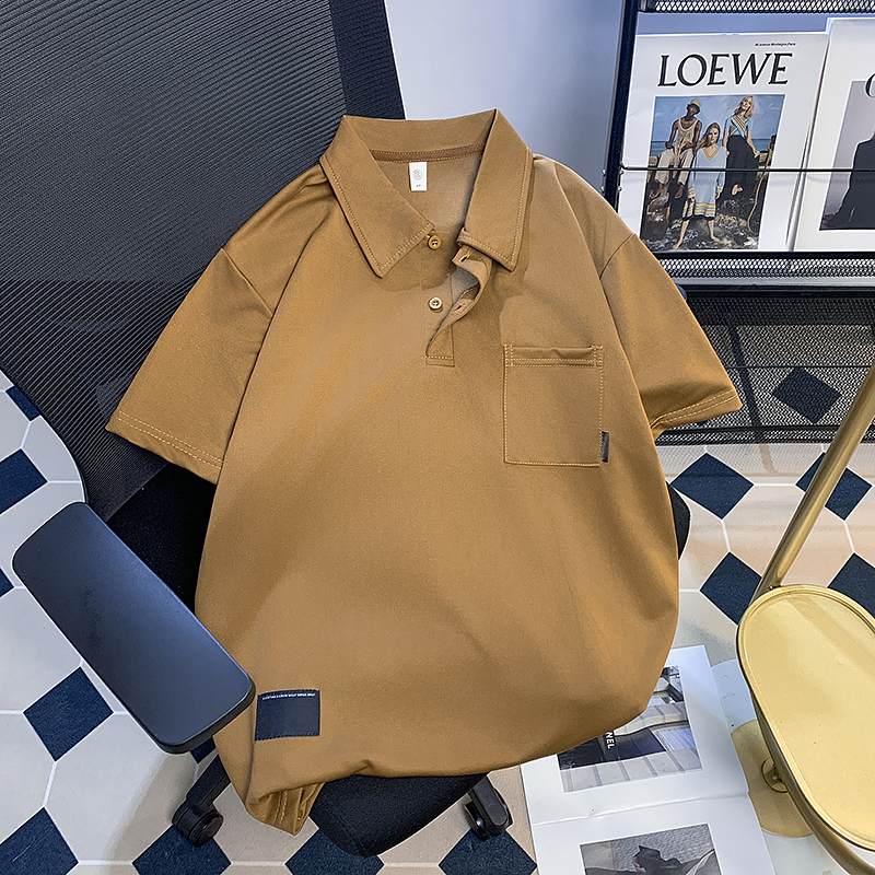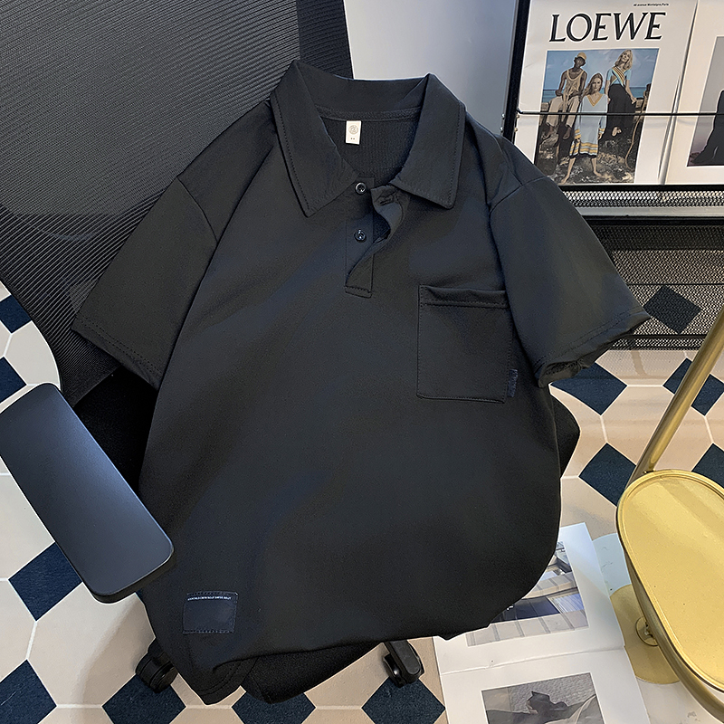 2024纯色口袋短袖POLO衫男夏季宽松潮牌翻领半袖T恤日系休闲体恤