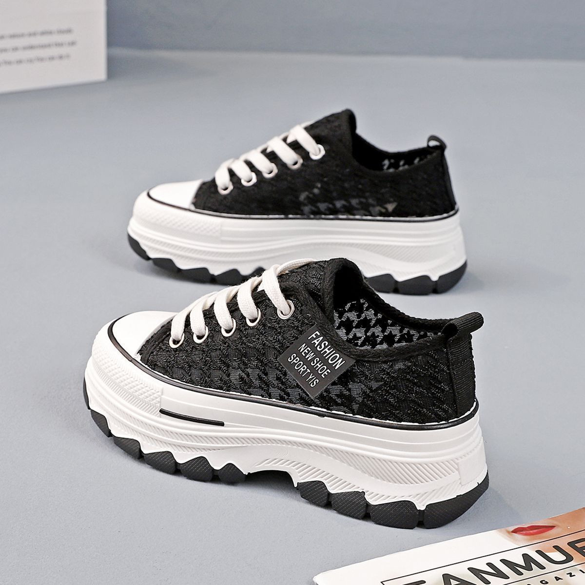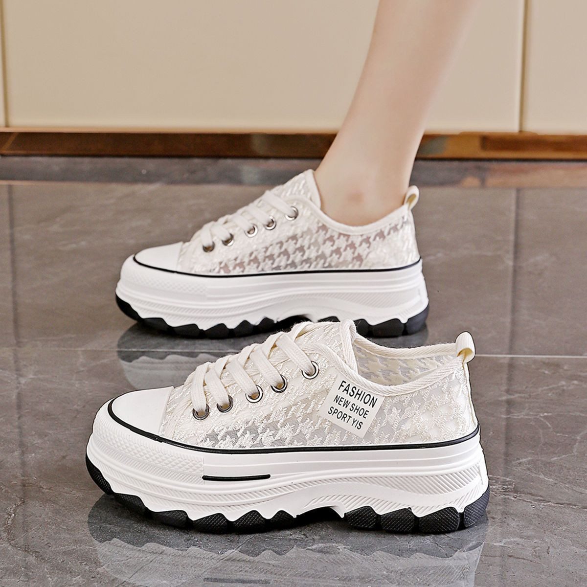 厚底帆布鞋女款2026新款春秋透气网面网纱松糕鞋学生增高小白鞋子